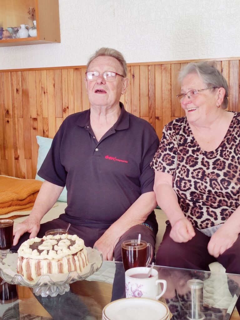Překvapení se moc nezdačilo, protože nás někdo bonznul a tak děda nás už očekával. Ale stejně měl radost. Já také, konečně mohu ochutnávat také dobroty. Musím opatrně, aby mě nebolelo bříško.